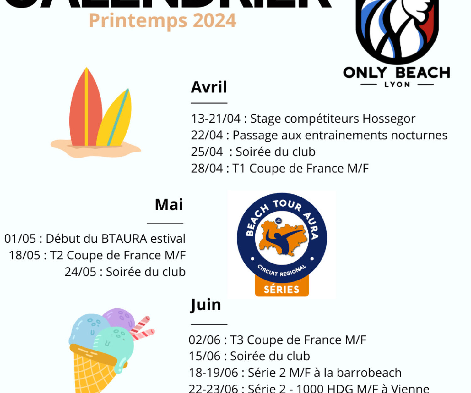 Vie du club 21 Avr 2024 Calendrier du printemps Le printemps 2024 promet d'être une saison palpitante pour tous les amateurs de beach volley à Lyon et ses environs,… Mohamed